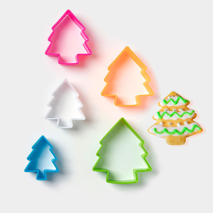 С помощью этих резаков можно создавать печенье в виде елочек разных размеров. Готовую выпечку можно покрыть глазурью, посыпкой, прорисовать кондитерской краской детали. Они изготовлены из высококачественного материала, просты в использовании, имеют компактный размер, подходят для любых видов теста.