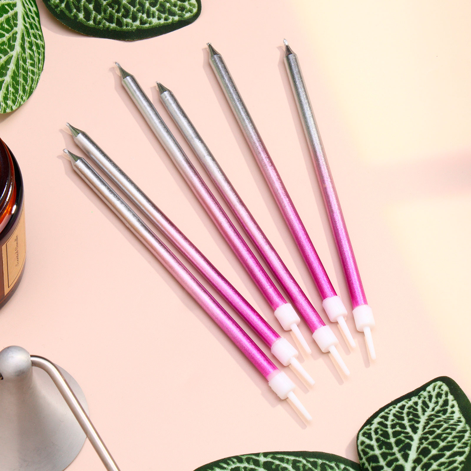 Свечи для торта, Фиолетовые+розовые+серебро, высокие, 6 шт