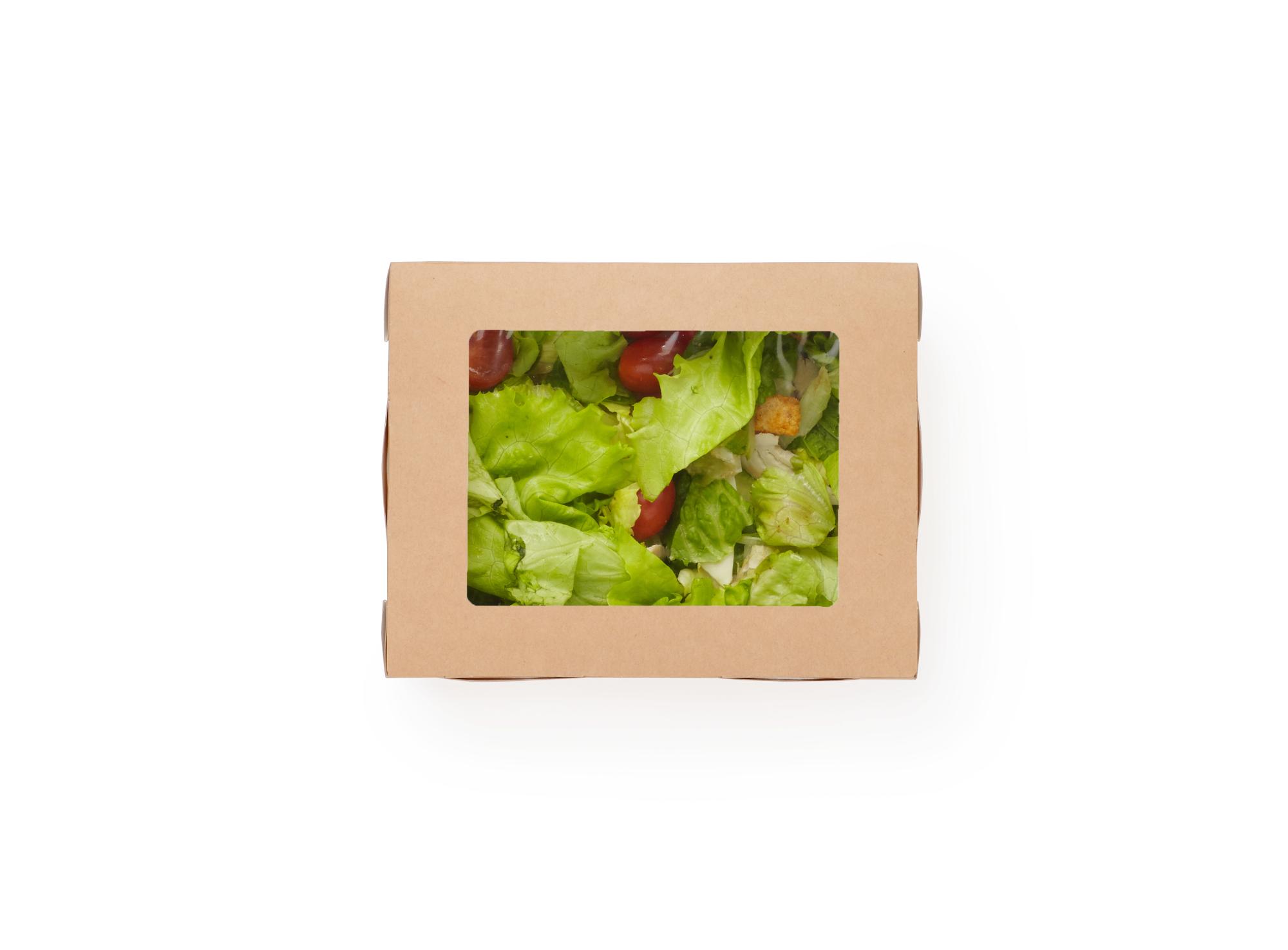 Упаковка ЕСО salad– это удобная и современная упаковка для салатов с прозрачными вставками, изготовленная из эко-материалов – картона и биоразлагаемой прозрачной пленки. Внутренняя часть коробки ламинирована, благодаря чему а в ней не заветривается, не протекает и не портится. Данная коробка прекрасно подходит для упаковки салата на вынос в ресторанах и кафе и кондитерских изделий. Практически идеальный вариант для выкладки товара на витрине.